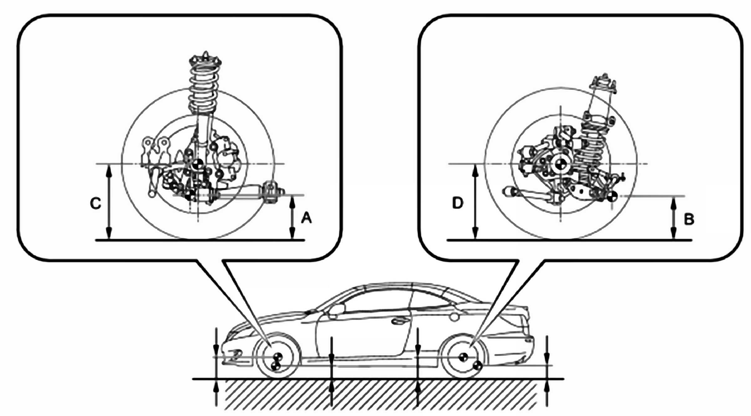 B: Ground clearance of rear No. 2 suspension arm adjust bolt center