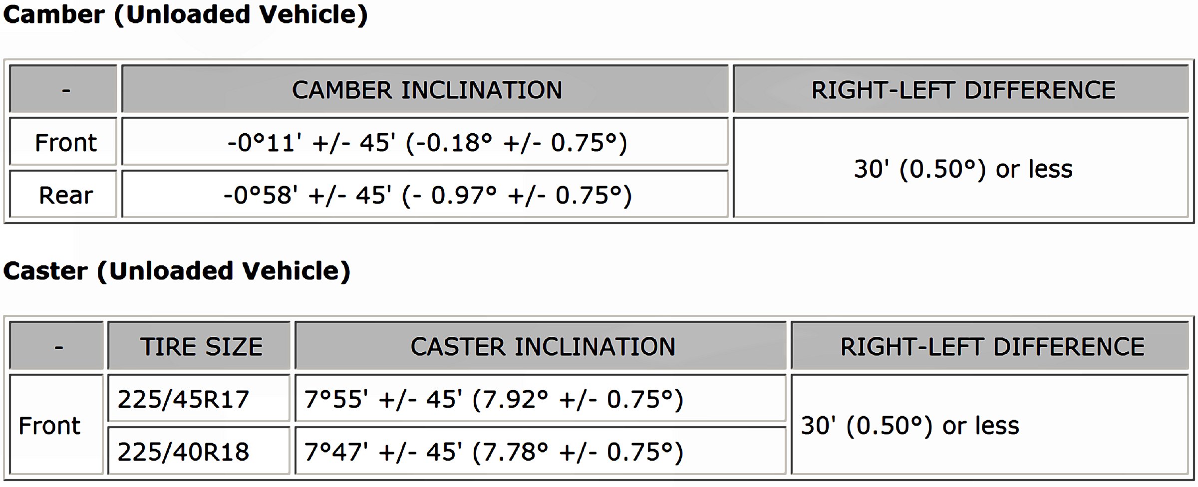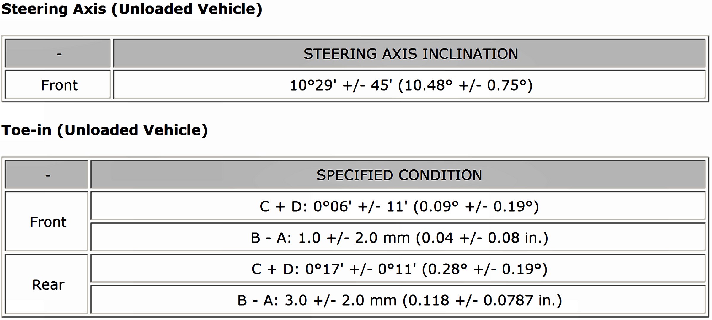 Wheel Alignment Specifications
