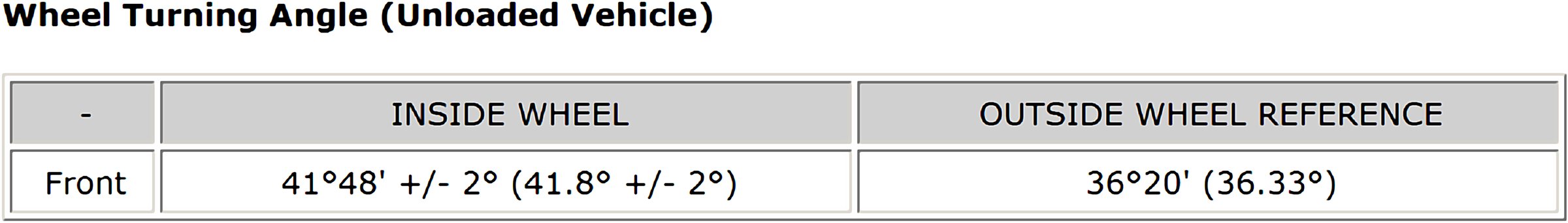 Wheel Turning Angle: