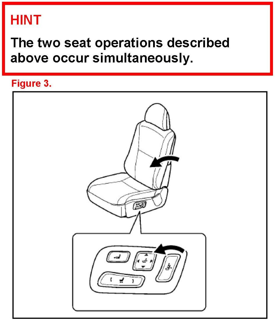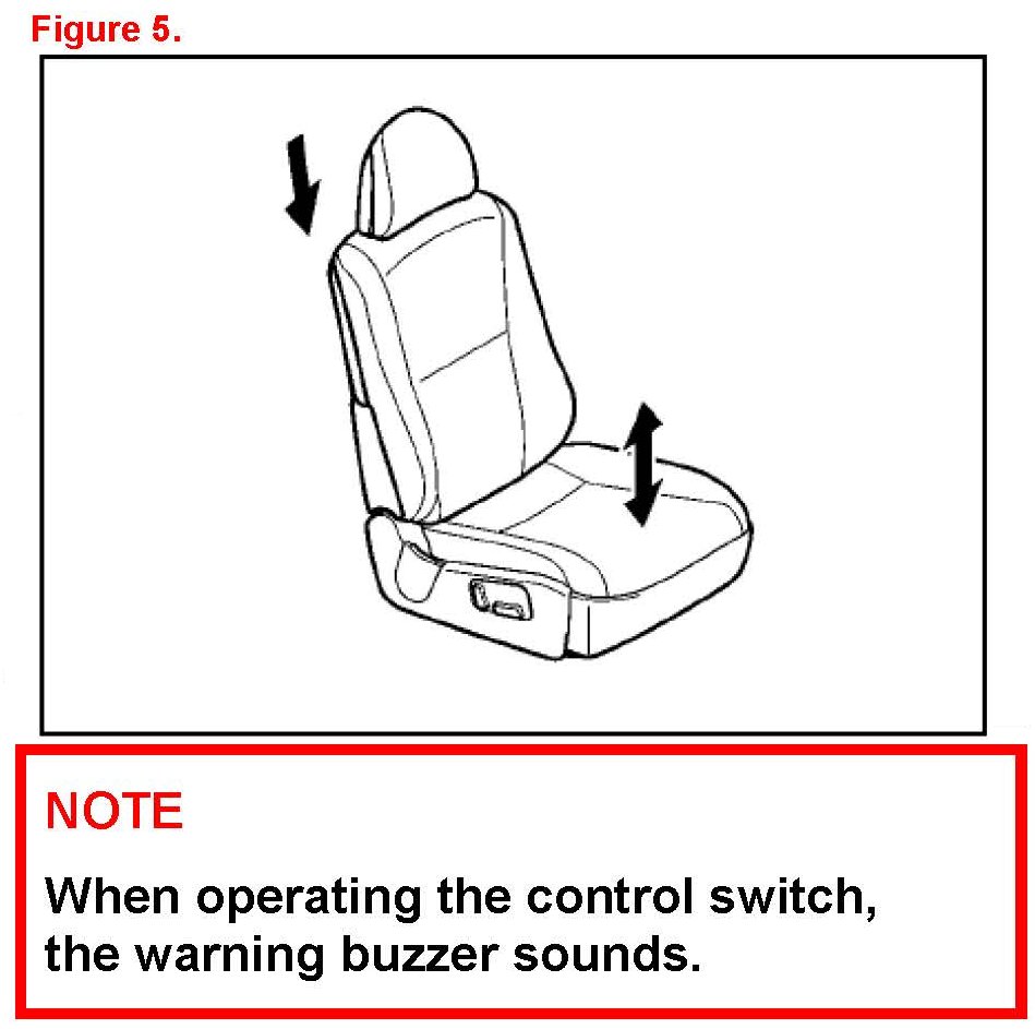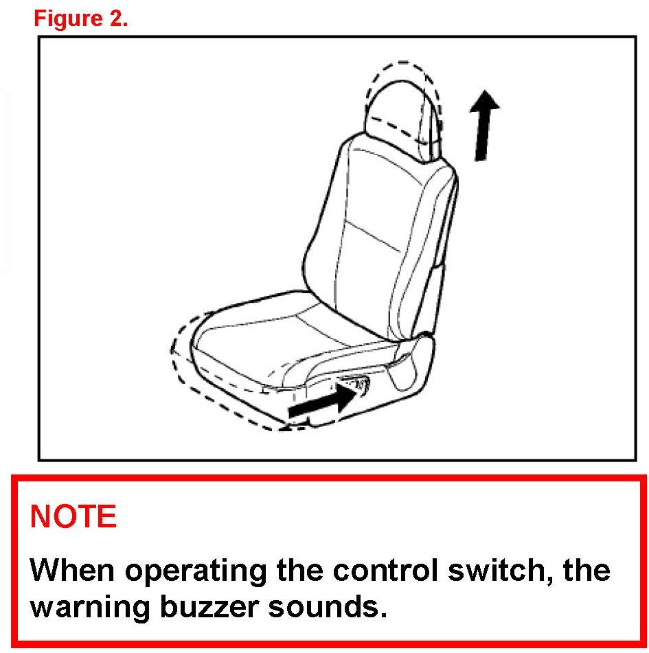 7. Operate the seat position control switch and check that the seat slides forward and rearward and that the beep is NOT heard. (Refer to "2" in figure 4.)