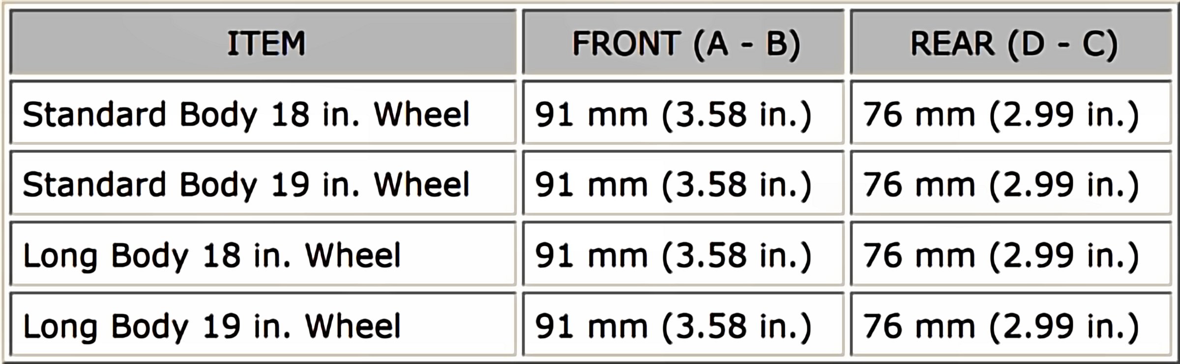 Ground clearance of front wheel center