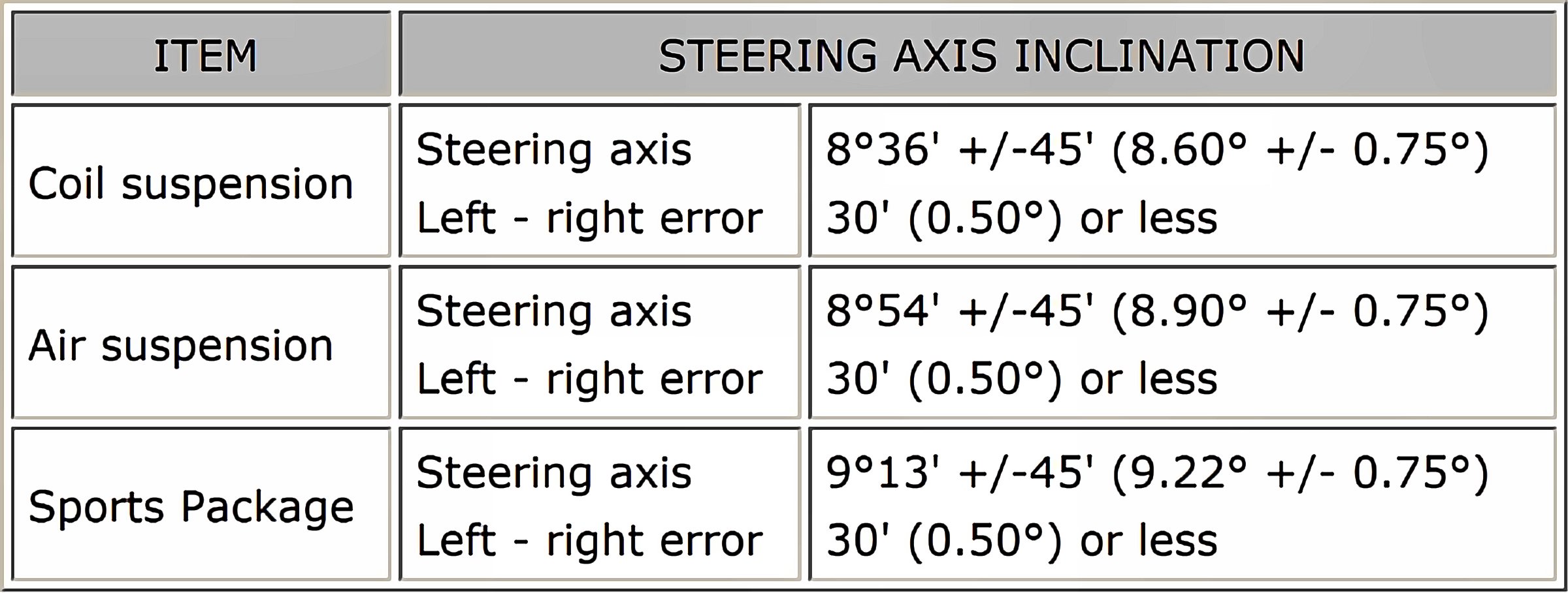 - The standard value shown here is a value that is used for adjusting the wheel alignment and does not indicate the height of an actual vehicle.