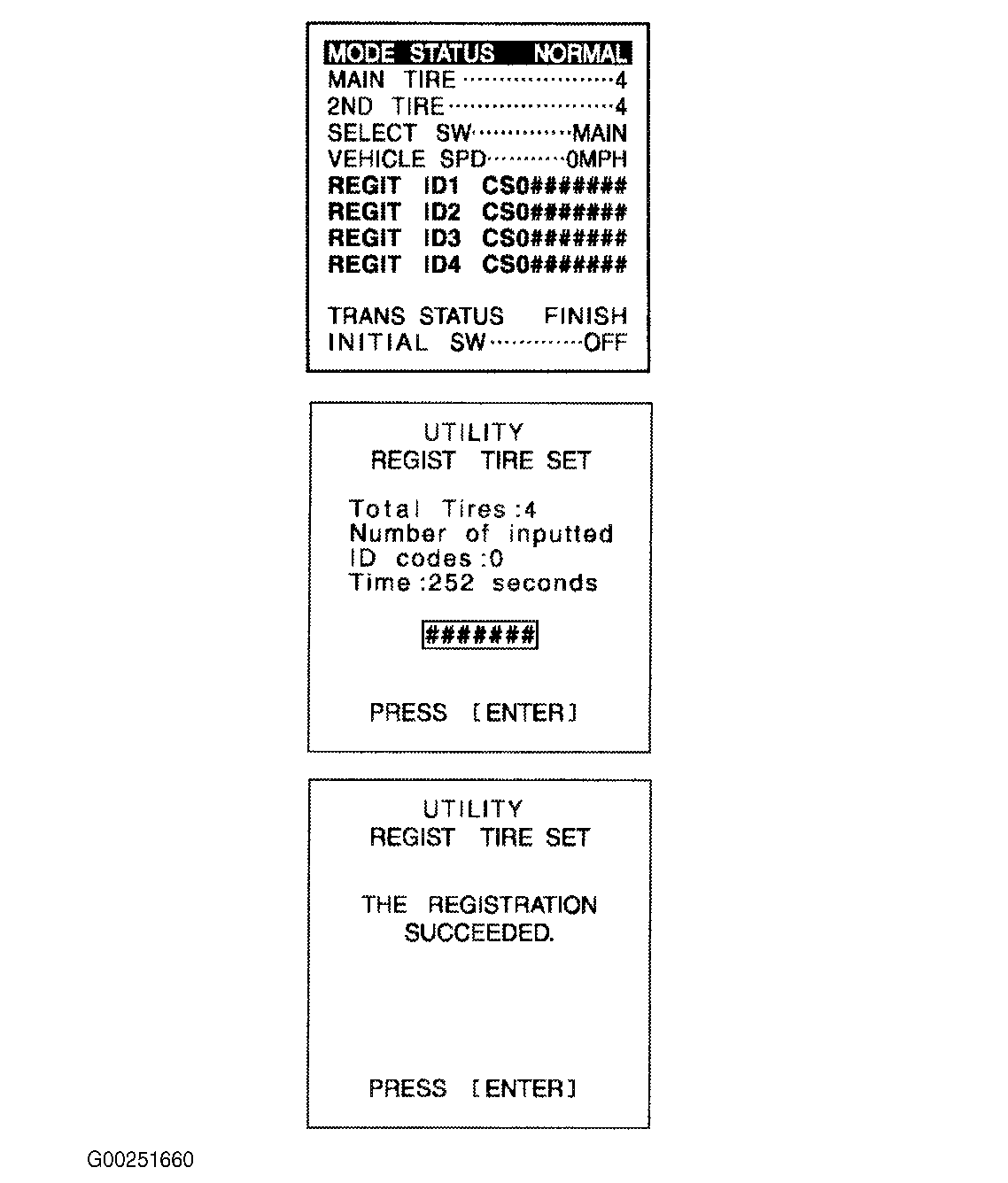 - Select the "REGIST TIRE" mode.