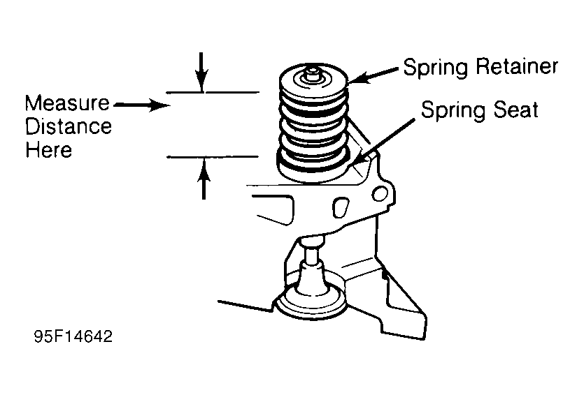 Valve spring installed height should be checked during reassembly. Measure height from lower edge of valve spring to the upper edge. DO NOT include valve spring seat or retainer. Distance must be within specification. If valves and/or seats have been ground, a valve spring shim may be required to correct spring height. See Fig 1.