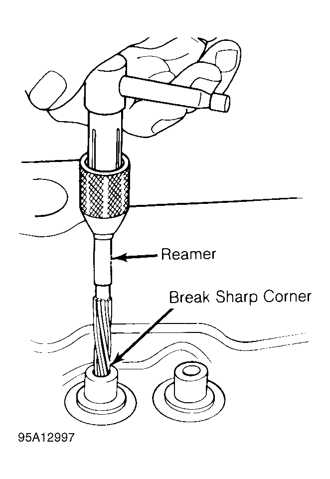 Select proper reamer for size of valve stem. Reamer must be of proper length to provide clean cut through entire length of valve guide. Install reamer in valve guide and rotate to cut valve guide. See Fig 1.