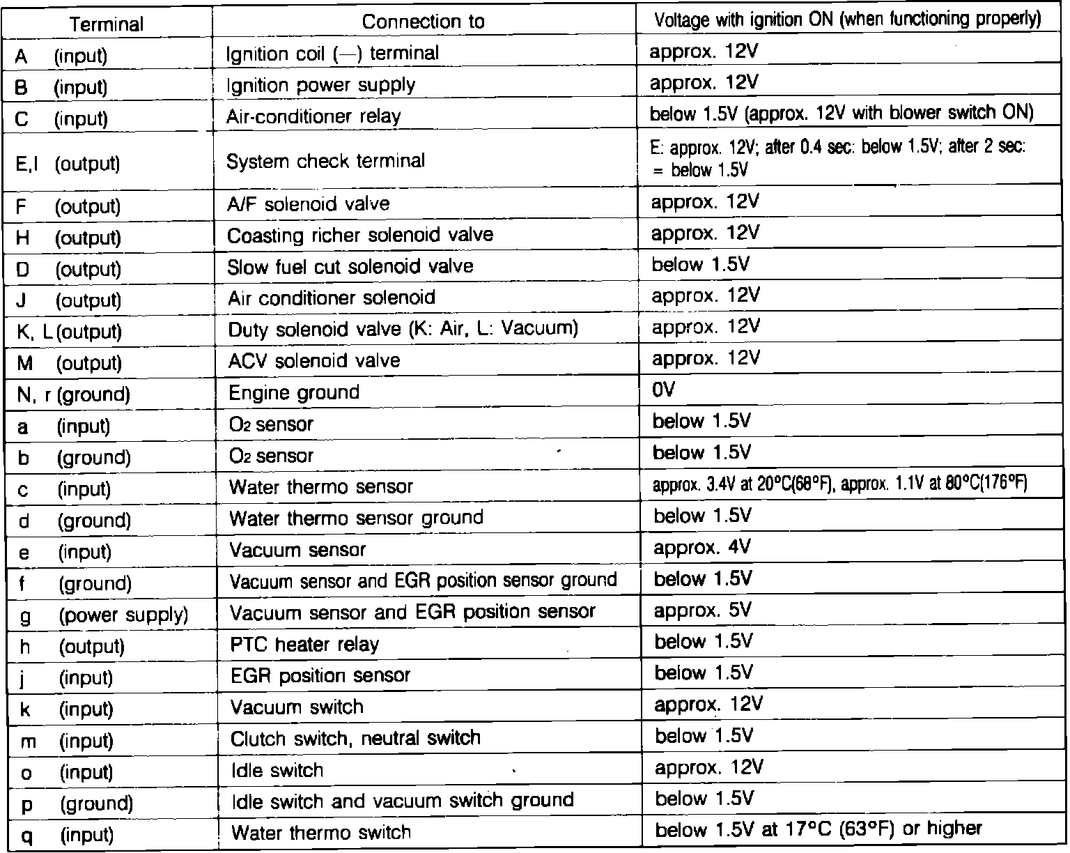 2. Measure voltage at each terminal and compare to values listed in Fig. 3.
