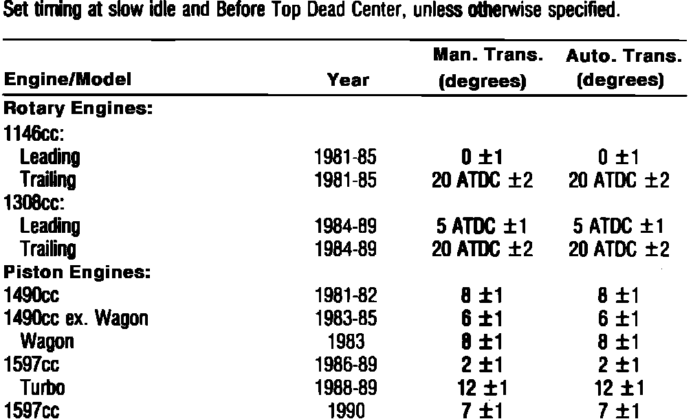 Ignition Timing: Specifications