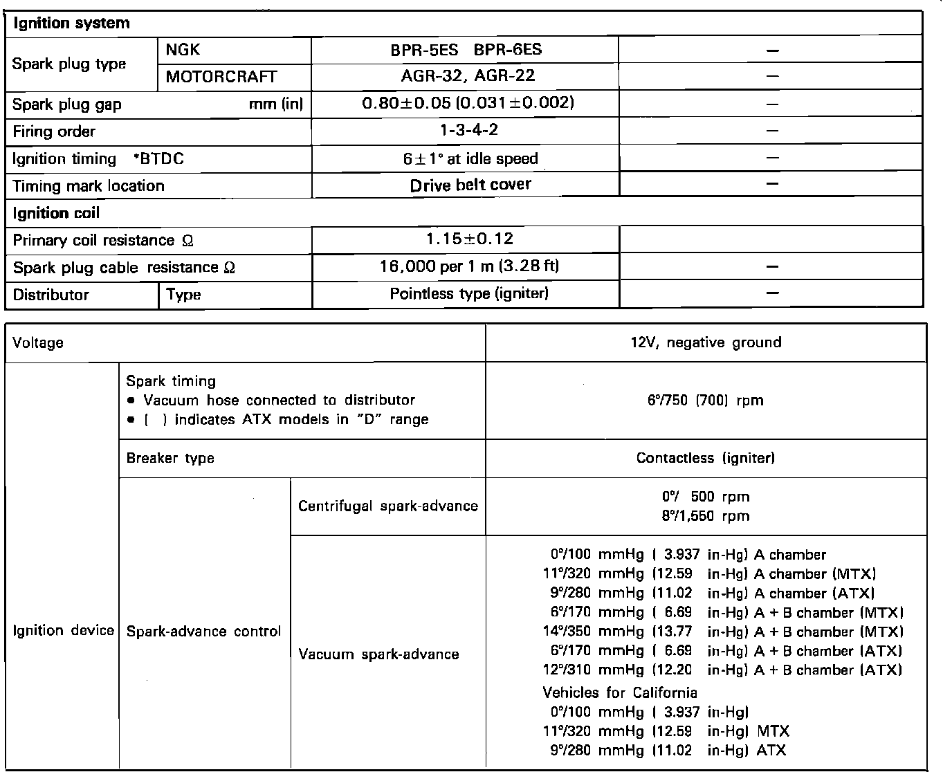 Ignition System: Specifications