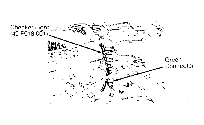 - Install tachometer. Warm engine to normal operating temperature. Allow engine to idle. Connect Checker Light (49 F018 001) to Green connector. See Figure .
