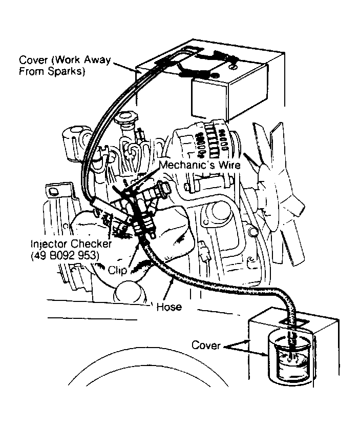 CAUTION: Use care when connecting injector checker to prevent sparks around fuel area.