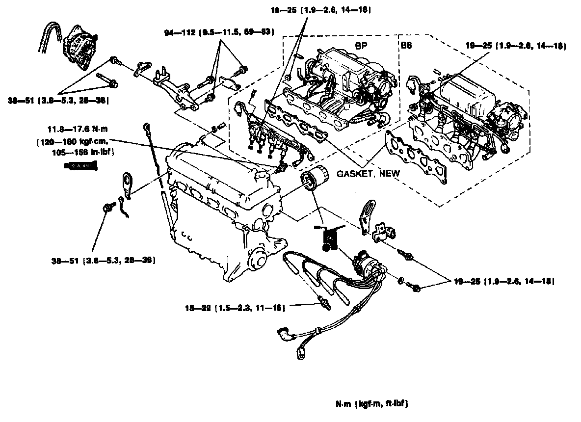 Home >> Mazda >> 1993 >> MX-3 L4-1597cc 1.6L >> Repair and Diagnosis >> Specifications >> Mechanical Specifications >> Engine >> System Specifications >> Torque Specifications