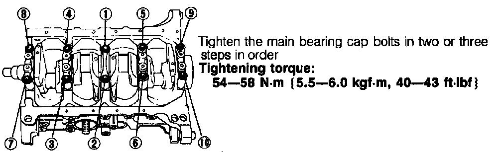 Tighten the cylinder head bolts in two or three steps in the order shown.