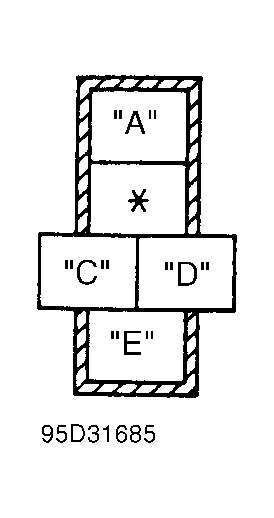 Remove cold start injector relay (located in left/front of engine compartment). Using ohmmeter, check continuity between terminals "A" and "E". Continuity should not exist. See Fig 1 . Apply battery voltage to terminal "C", and ground terminal "D". Again check continuity between terminals "B" and "D" with battery voltage applied. Continuity should exist between terminals "A" and "E" with voltage applied. Replace relay as necessary.