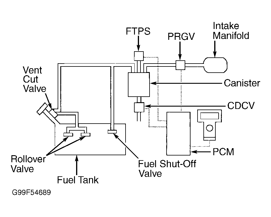 Purge system operation takes place when vehicle is accelerating in gear (off idle), engine is at operating temperature and oxygen sensor is functioning normally. Ensure all vapor lines are connected and in acceptable condition. See Fig 1 .