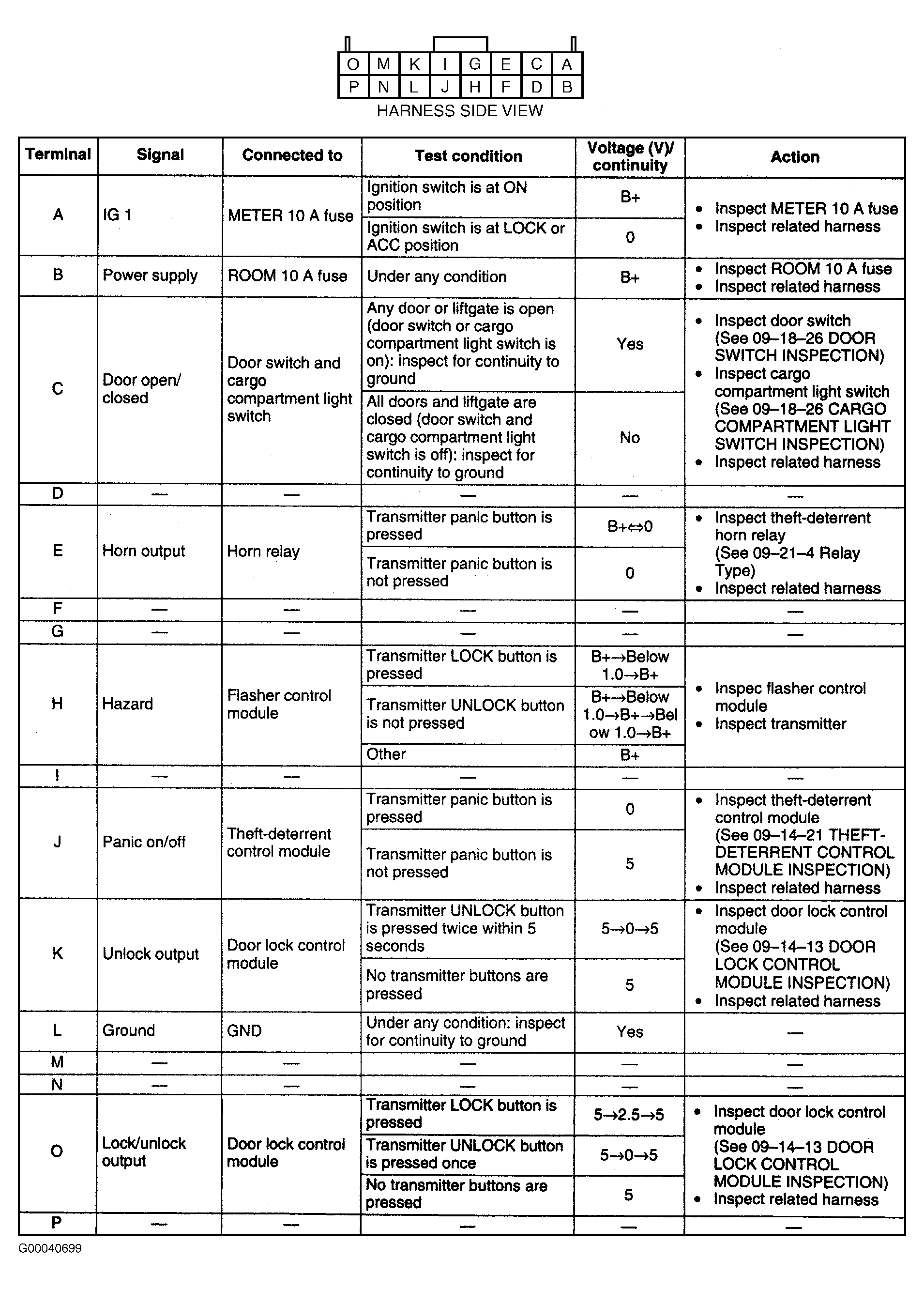 Home >> Mazda >> 2001 >> MPV ES >> Repair and Diagnosis (Single Page) >> Accessories & Equipment >> Anti-Theft Systems >> Security & Locks >> Component Tests >> Keyless Control Module