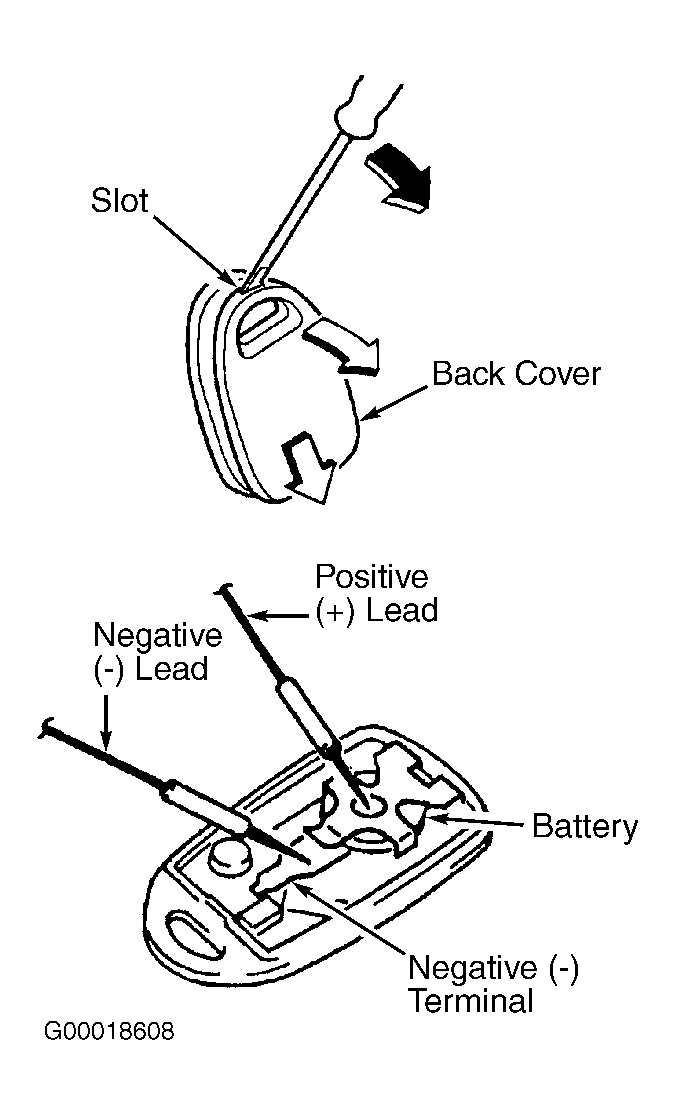 - Substitute known-good battery in transmitter and retest. If anti-theft/keyless entry system works properly, replace battery and go to step 6