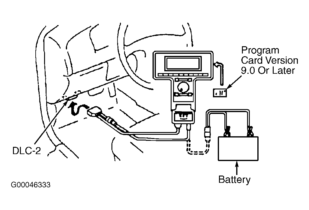 2. Warm engine to operating temperature. Turn ignition off. Connect scan tool to DLC-2. DLC-2 is located under left side of instrument panel, left of steering column. See Figure . Turn ignition on. Select PID/DATA MONITOR AND RECORD. Select ECT PID. Ensure ECT is more than 140°F (60°C). If ECT is as specified, go to next step. If ECT PID is 140°F (60°C) or less, check ECT sensor. Repair as necessary.