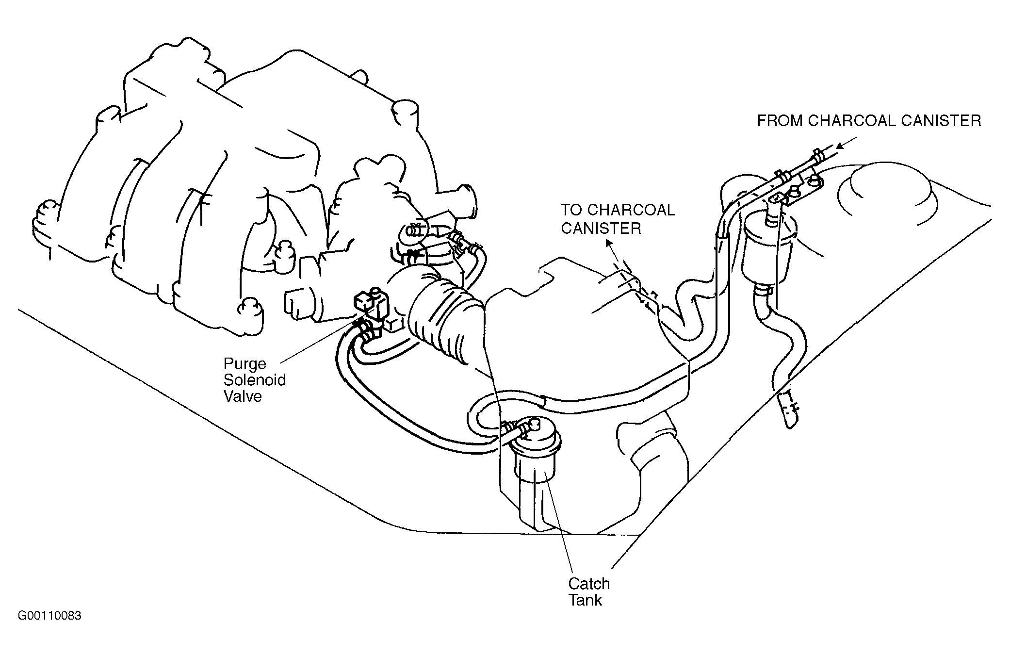 Purge system operation takes place when vehicle is accelerating in gear (off idle), engine is at operating temperature and HO2S is functioning normally. Ensure all vapor lines are connected and in acceptable condition. See Fig 1 and Fig 2 .