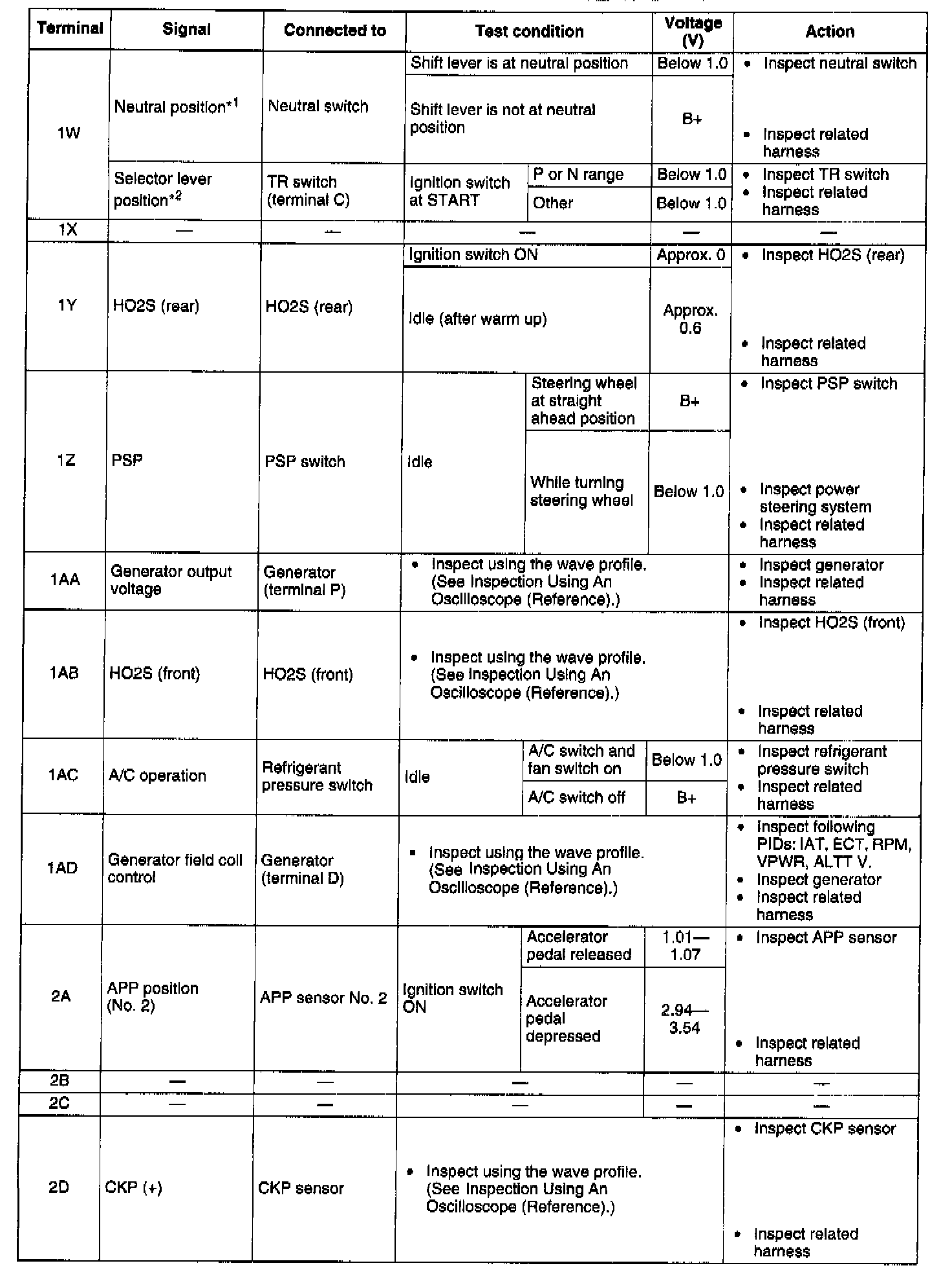 Terminal Voltage Table (Reference) - Terminals (1W - 2D):