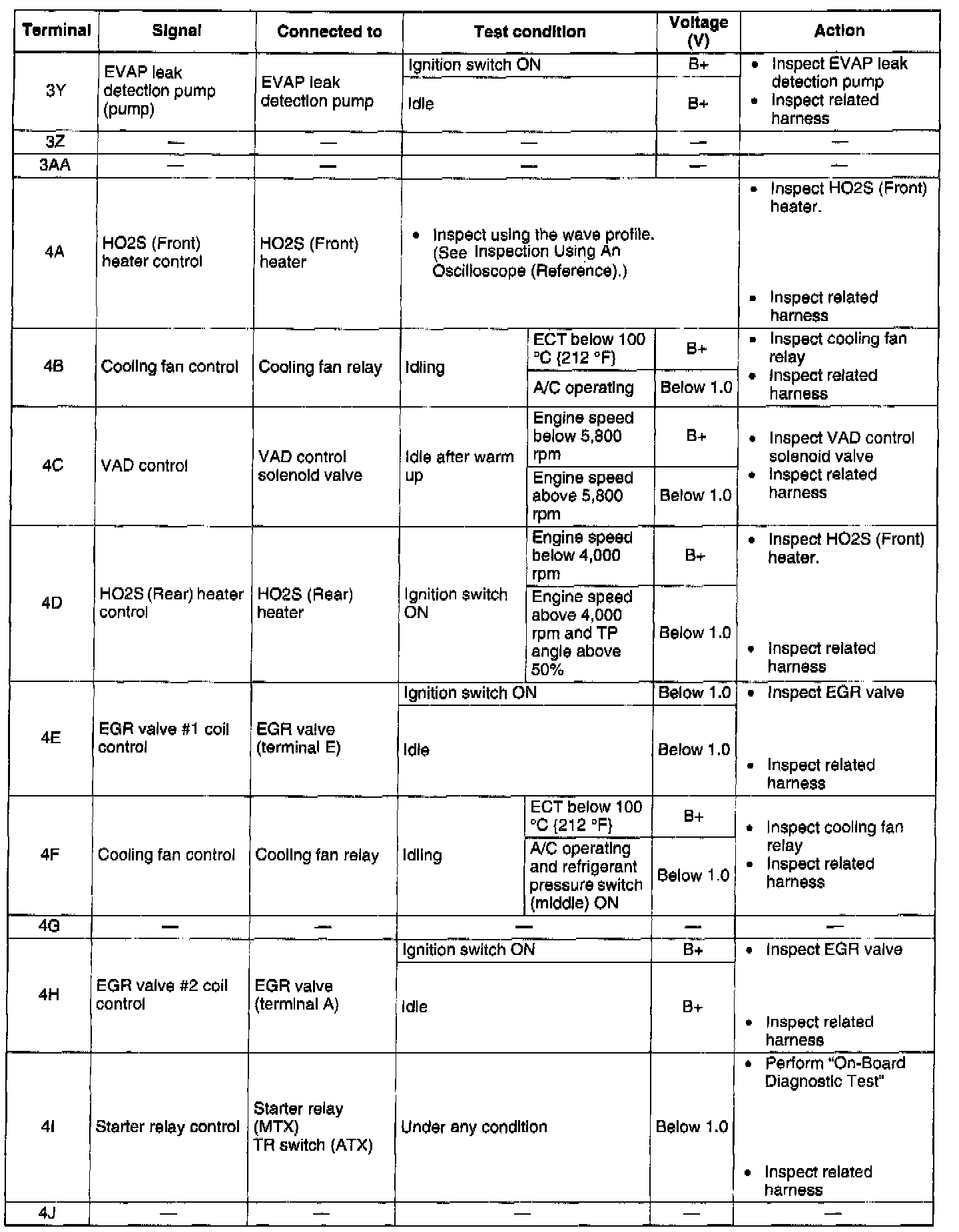 Terminal Voltage Table (Reference) - Terminals (3Y - 4J):