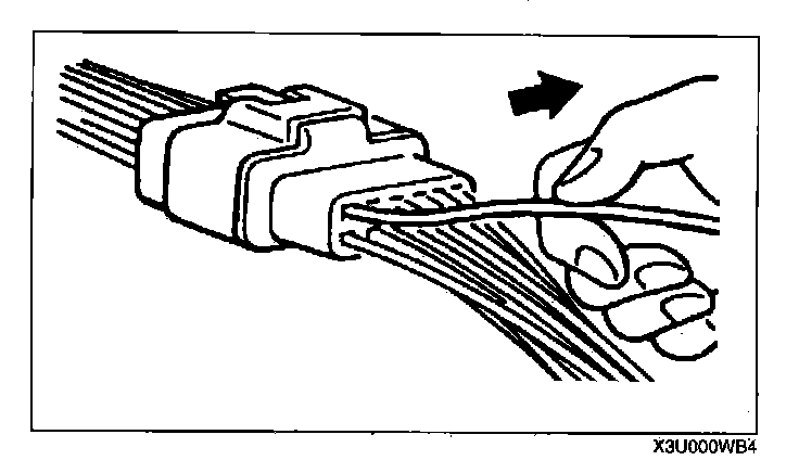 - Insert a thin piece of metal from the terminal side of the connector and with the terminal locking tab pressed down, pull the terminal out from the connector.