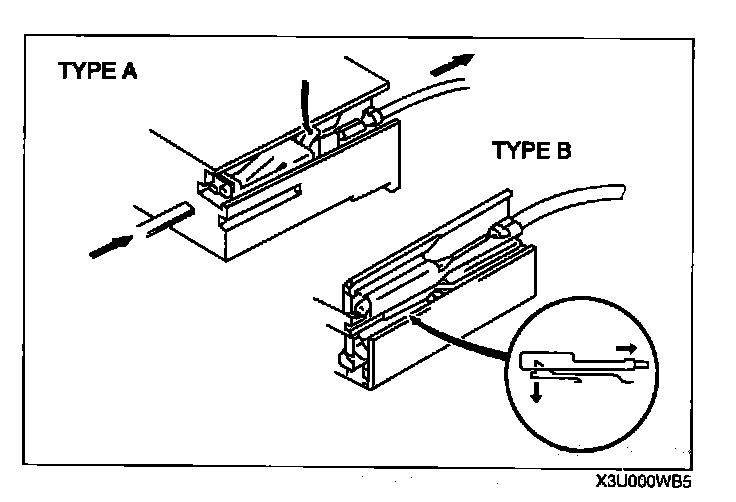 - Use the appropriate tools to remove a terminal as shown. When installing a terminal, be sure to insert it until it locks securely.