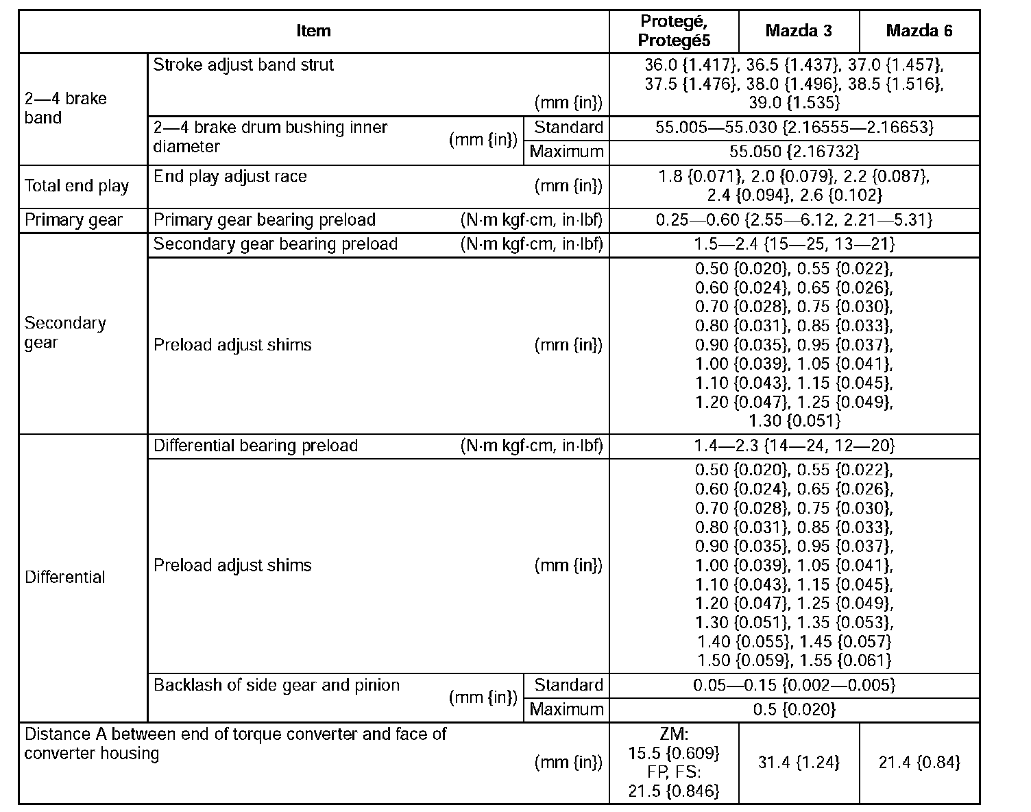 TRANSMISSION/TRANSAXLE TECHNICAL DATA