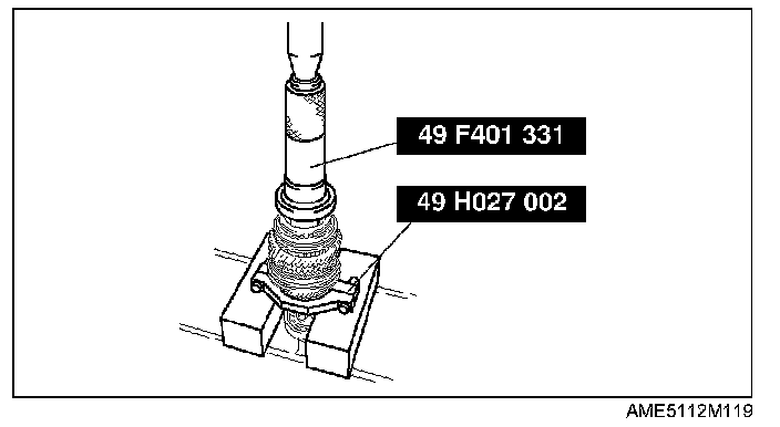 Place the primary shaft rear bearing with the brown side facing toward the 5th gear.