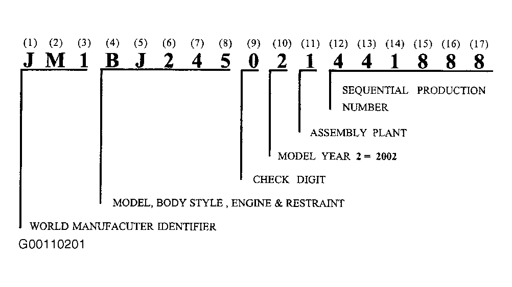 For Vehicle Identification Number (VIN) description, refer to the following items and illustration. See Figure .