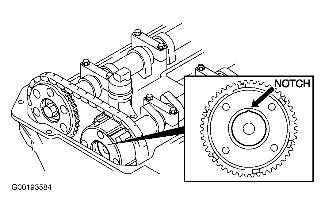 • If groove and notch are not aligned, turn crankshaft clockwise two rotations. Verify that groove and notch are aligned.