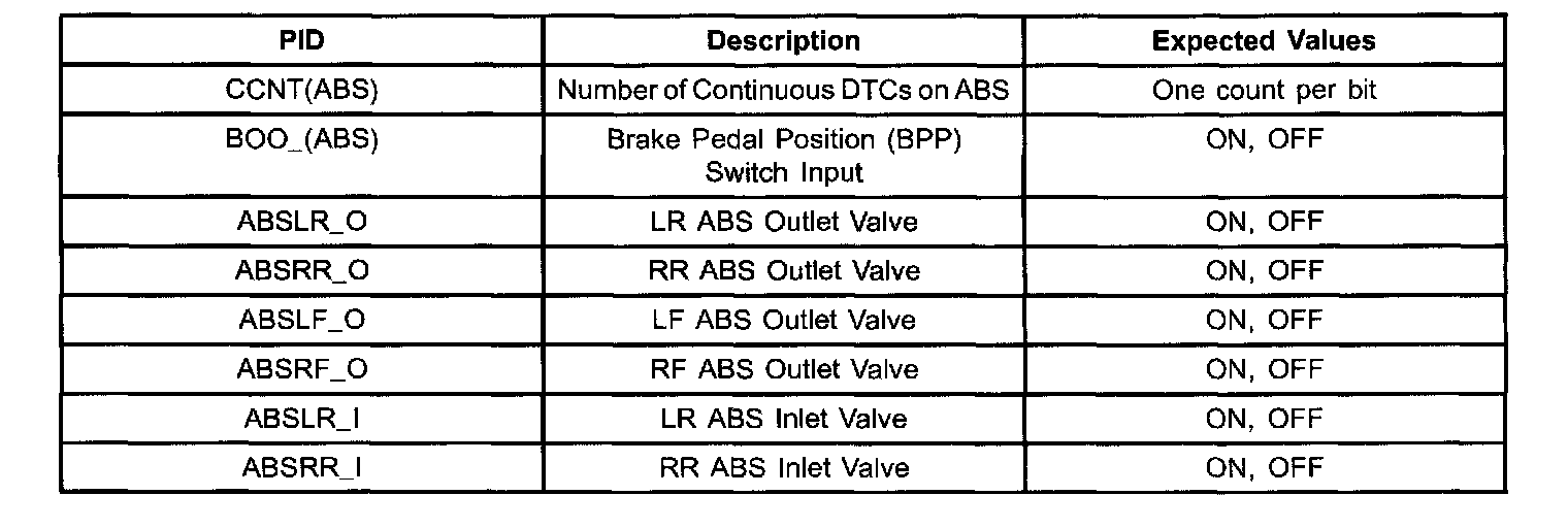 Part 1 Of 2. Anti-Lock Brake Control Module Parameter Identification (PID) Index: