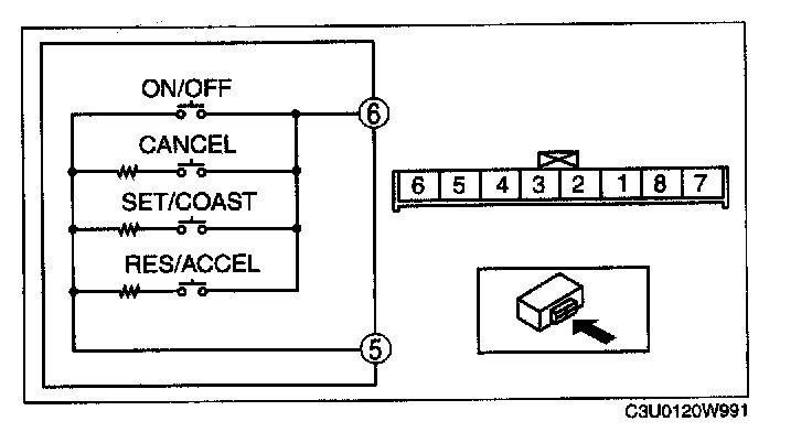 - Cruise control switch terminal 6 and body GND