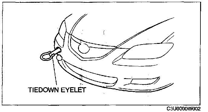 - If the tie down eyelet is not securely tightened, it may loosen or disengage from the bumper when tying down the vehicle. Make sure that the tie down eyelet is securely tightened to the bumper.