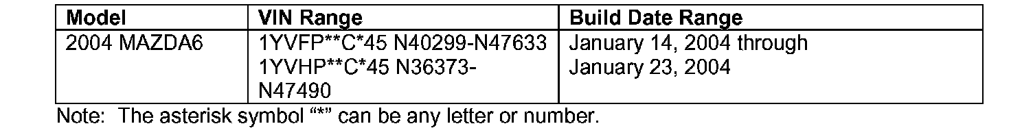 On some 2004 MAZDA6 vehicles equipped with 2.3 liter engines, the Malfunction Indicator Lamp (MIL) in some vehicles may not illuminate as required in the event of a detected 02 sensor fault. This concern is caused by a Powertrain Control Module (PCM) calibration. If this failure occurs, the vehicle does not meet the OBD-II requirements.