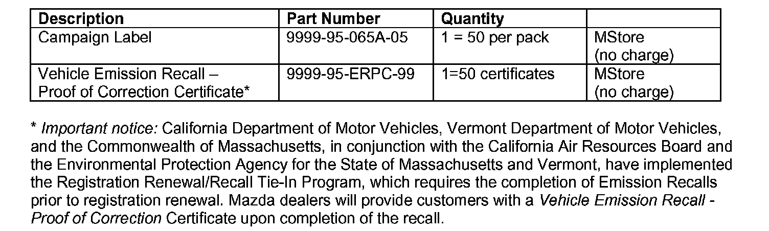 Home >> Mazda >> 2004 >> 6 L4-2.3L >> Repair and Diagnosis >> Powertrain Management >> Emission Control Systems >> Technical Service Bulletins >> By Symptom >> Recalls >> Recall - PCM/TCM Reprogramming for O2 Sensor Fault >> Attachment I - Dealer Information