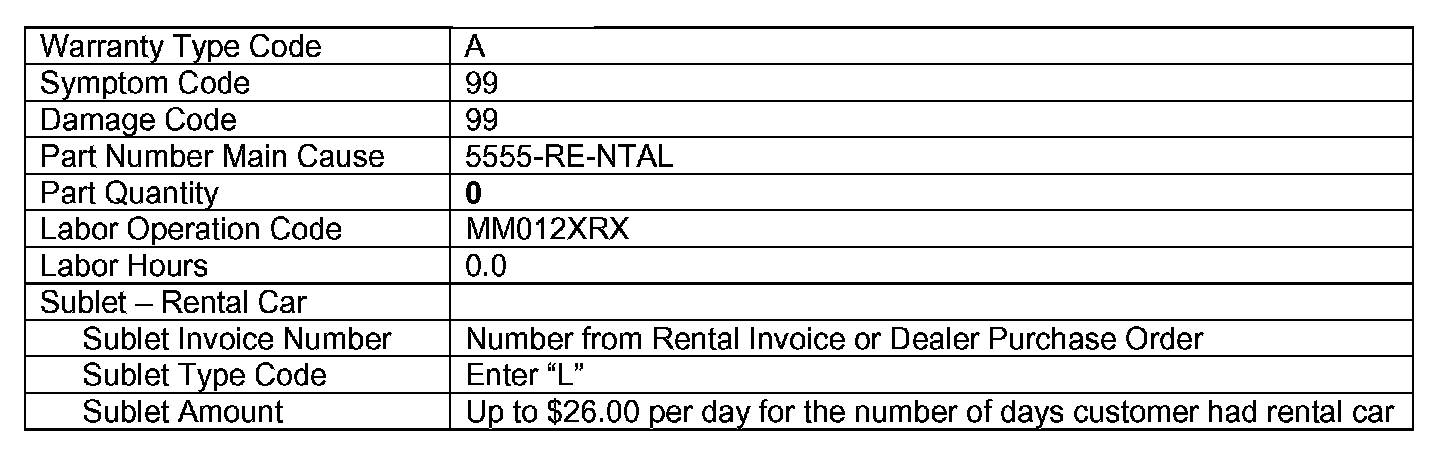 A rental car may be provided to the customer if eligible based on the terms and conditions of the Rental Car Reimbursement Program, policy 12.0. Rental car reimbursements are available only on 2001 and newer vehicles within the mileage and time limitations under the New Vehicle Limited Warranty. If the customer was placed in a rental car while the campaign was being completed, submit a separate claim/problem using the standard rental claim information.