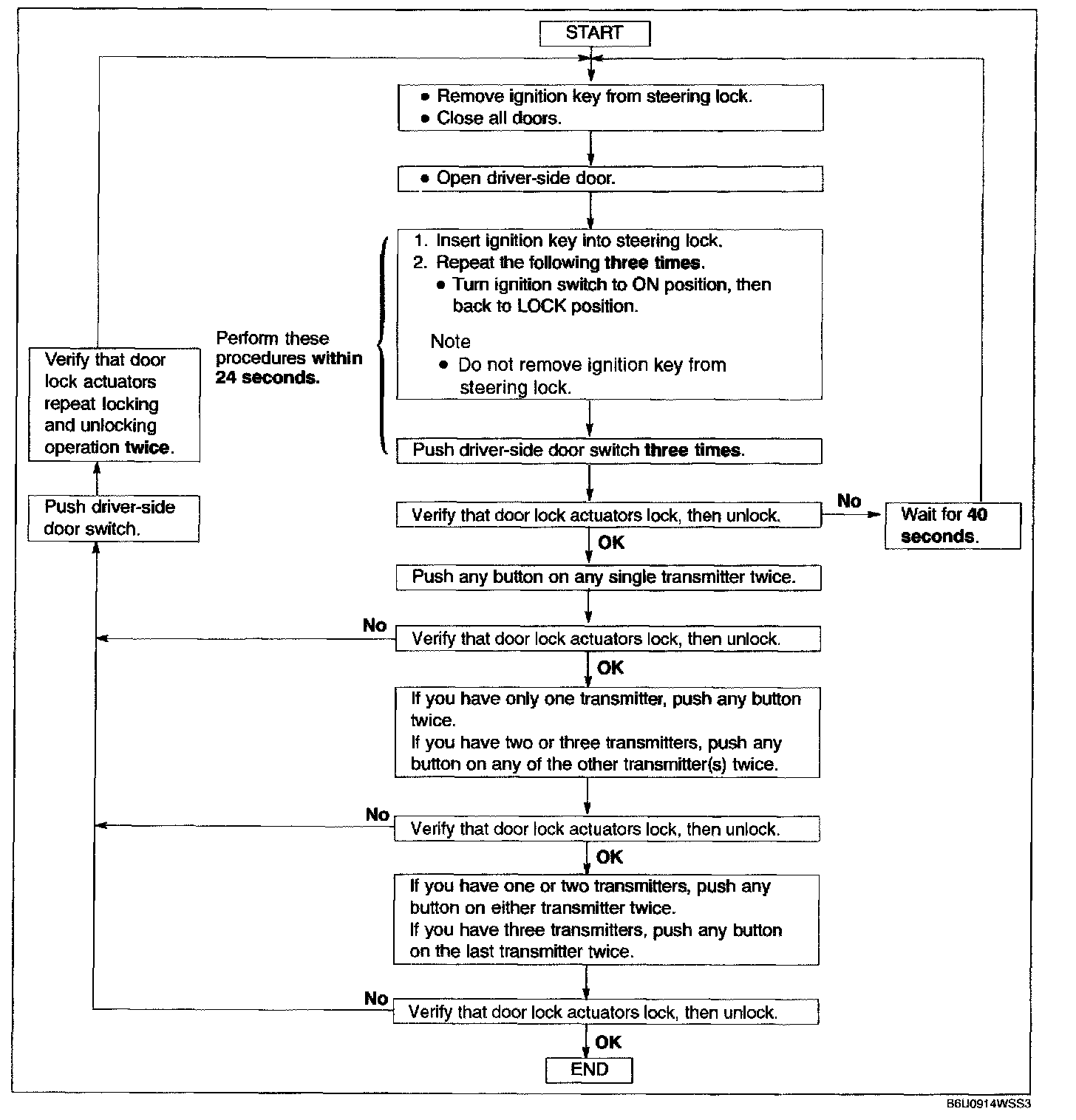 DOOR LOCK CONTROL MODULE ID CODE CHANGE- When programming the ID code into a transmitter, verify that other transmitters are not being operated in the vicinity.
