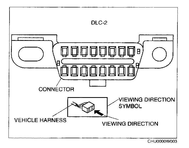 When it is necessary to show the terminal side of vehicle harness-side connectors, such as the following connectors, the viewing direction is from the terminal side.