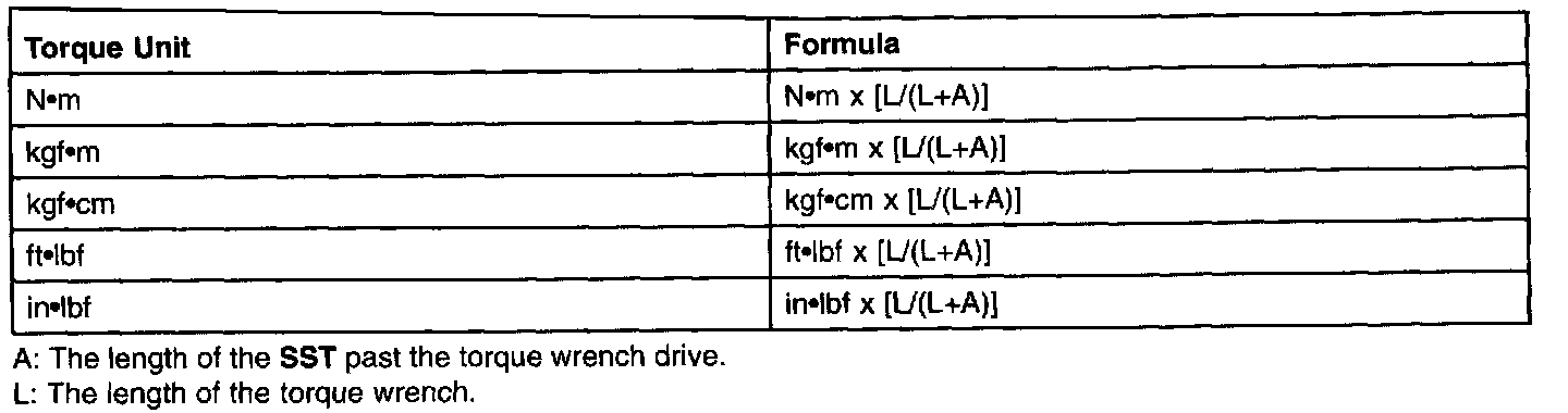 - When using a torque wrench-SST combination, the written torque must be recalculated due to the extra length that the SST adds to the torque wrench. Recalculate the torque by using the formulas. Choose the formula that applies to you.