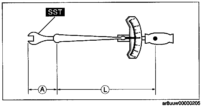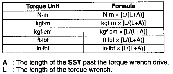 - When using a torque wrench-SST or equivalent combination, the specified torque must be recalculated due to the extra length that the SST or equivalent adds to the torque wrench. Recalculate the torque by using the following formulas. Choose the formula that applies to you.