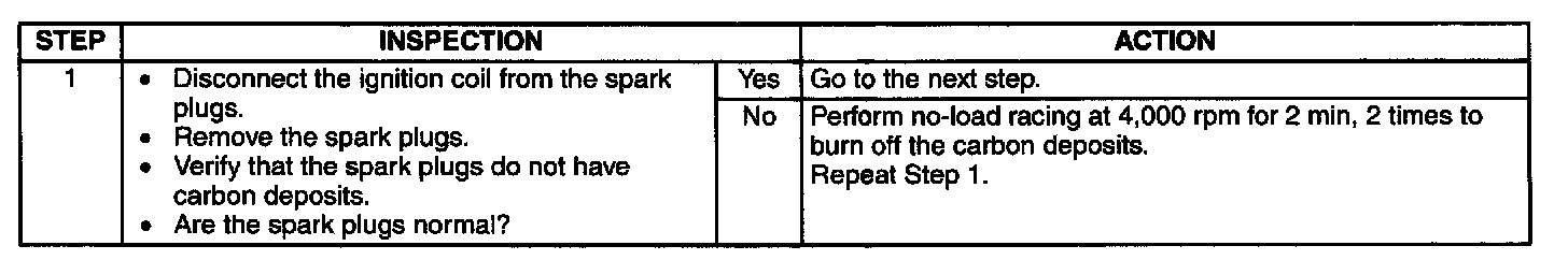 WARNING - High voltage in the ignition system can cause strong electrical shock which can result in serious injury. Avoid direct contact to the vehicle body during the following spark test.