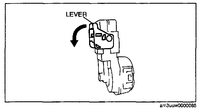 1. Rotate the lever in the direction of the arrow and remove the connector.