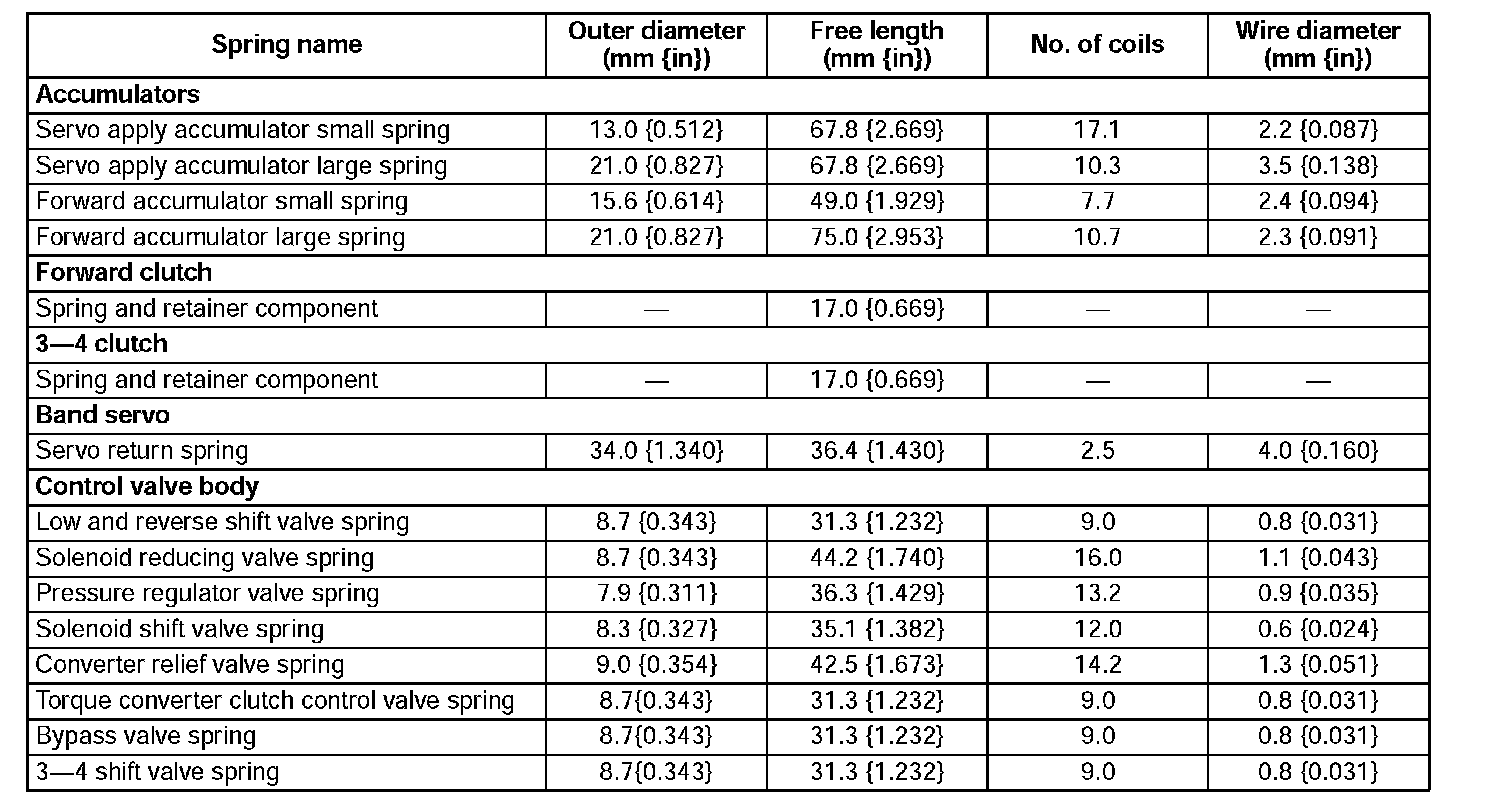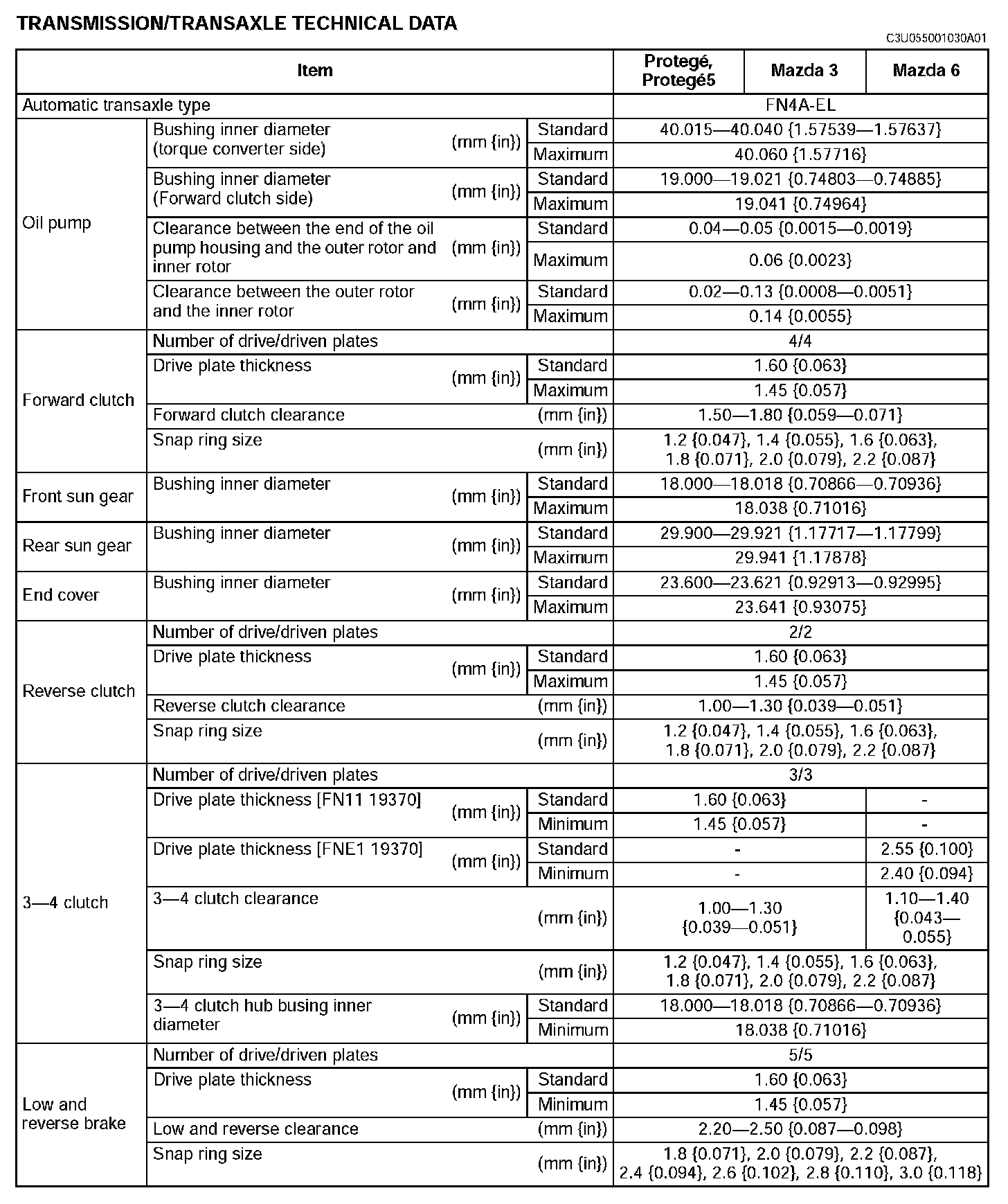 TRANSMISSION/TRANSAXLE TECHNICAL DATA