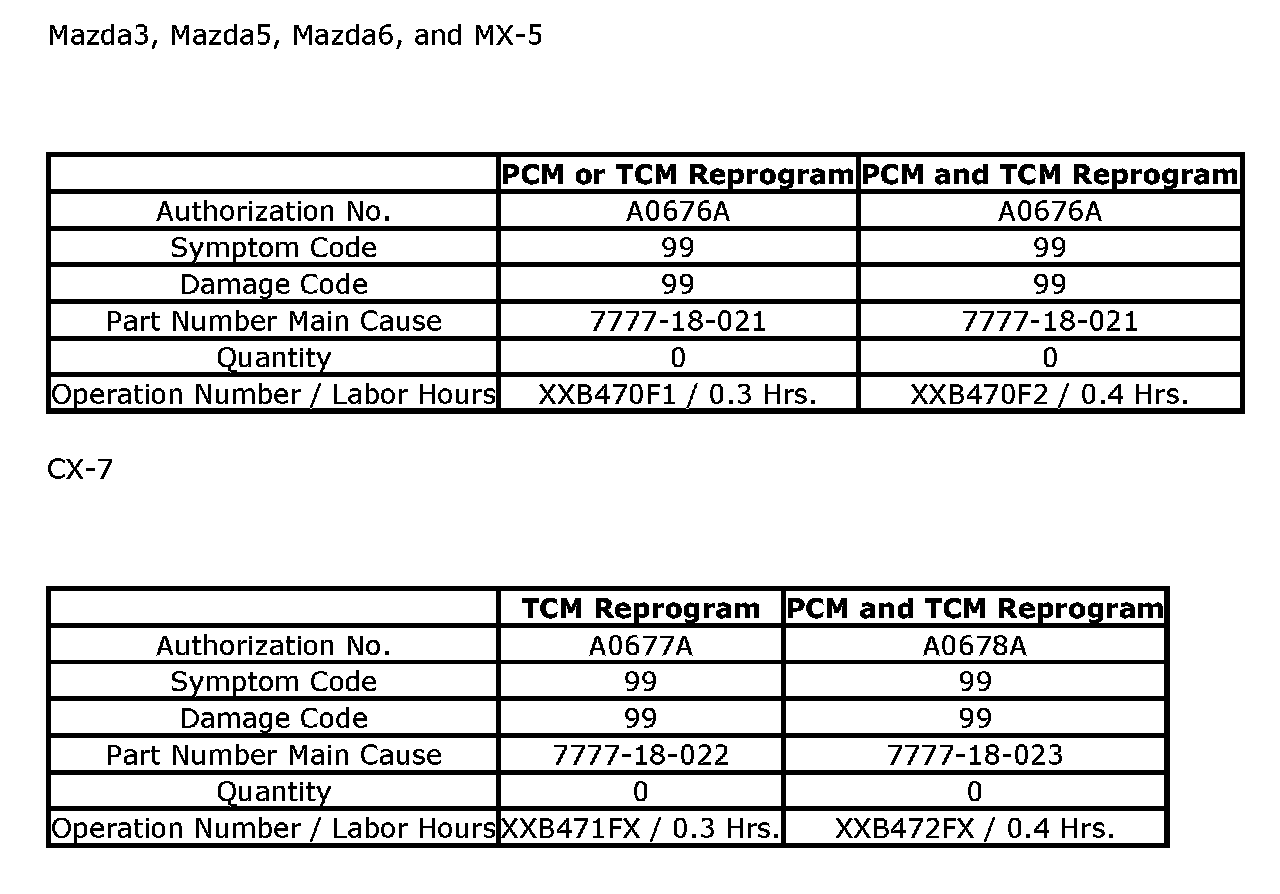 These are not necessarily the same Mazda part numbers used to order an actual TCM through the Mazda Parts System. It is not necessary to order a TCM as part of this repair procedure.