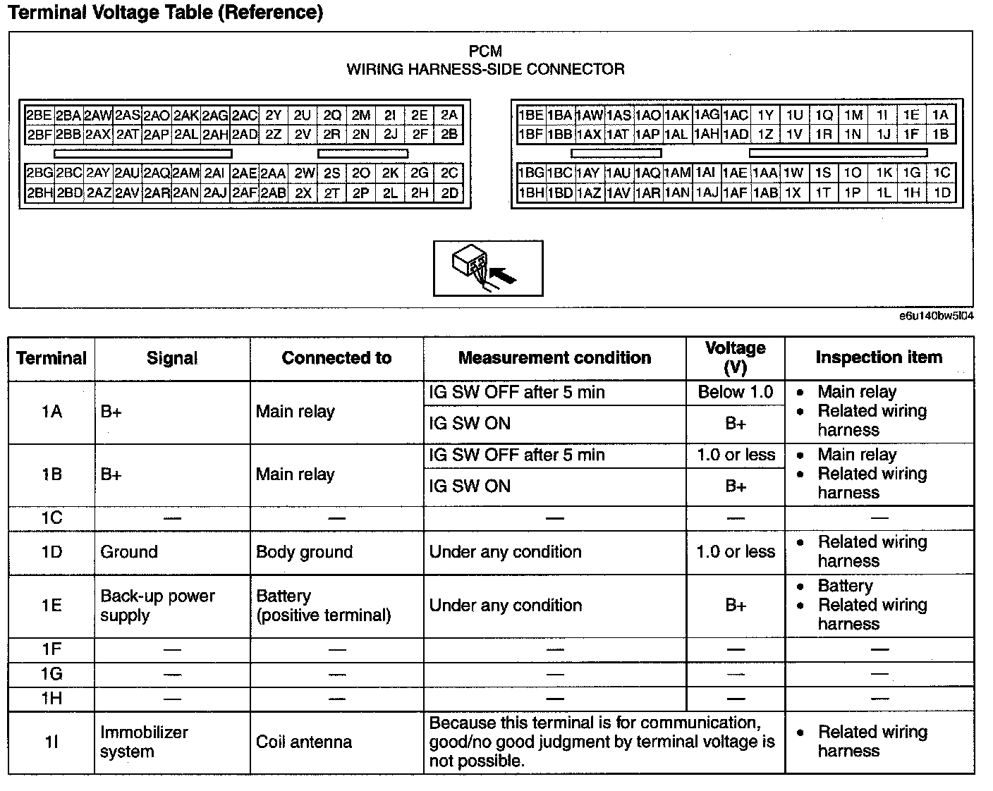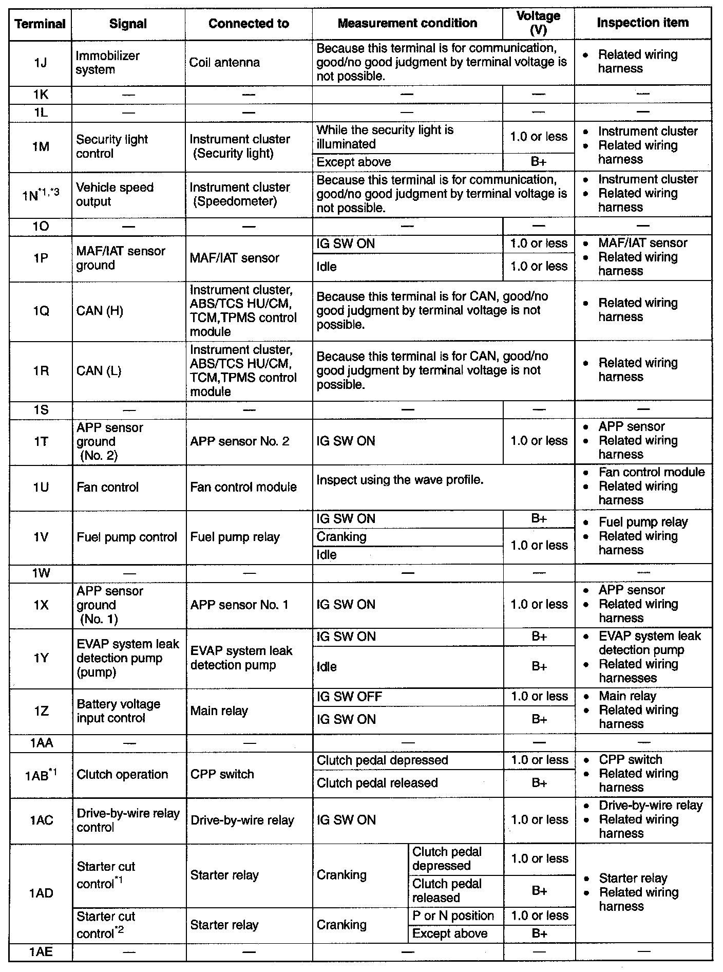 Terminal Voltage Table(Reference)-Terminal(1J-1AE):