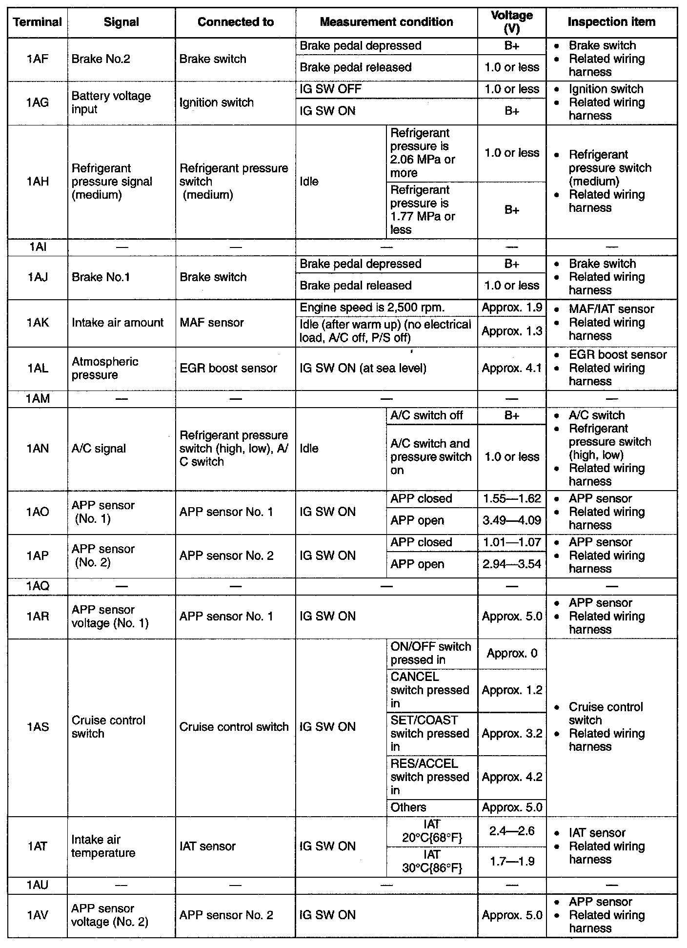 Terminal Voltage Table(Reference)-Terminal(1AF-1AV):