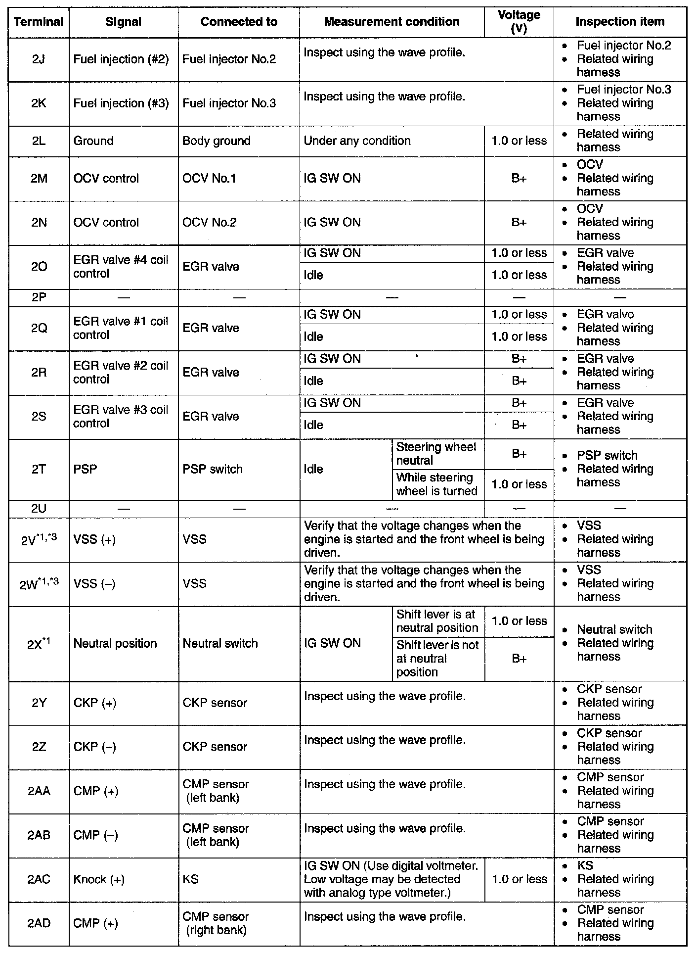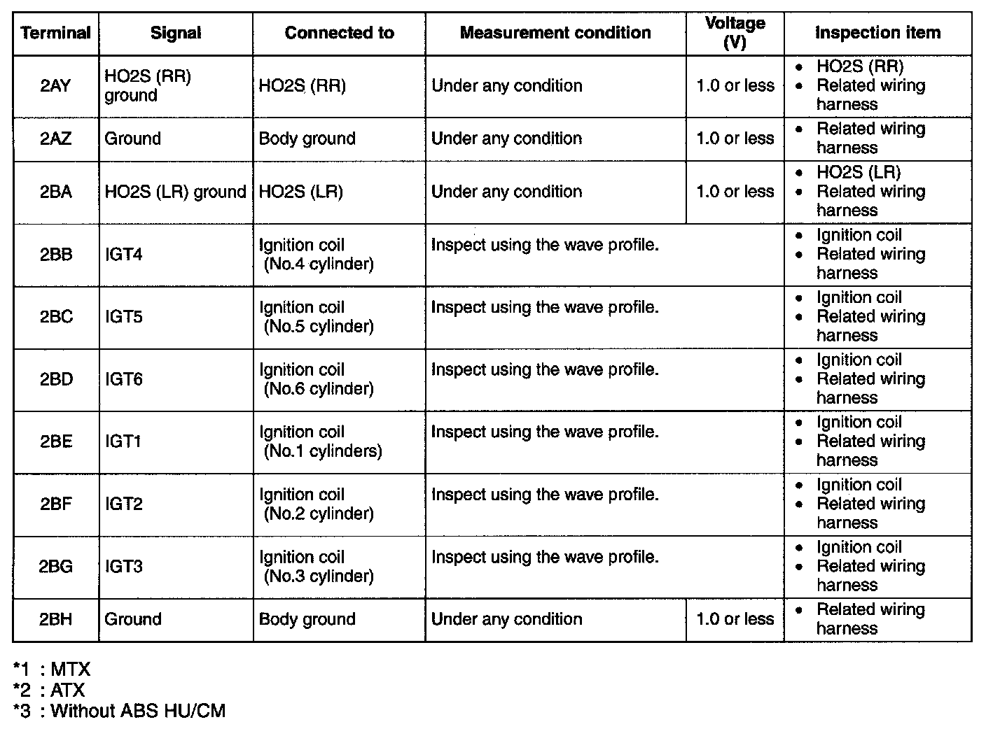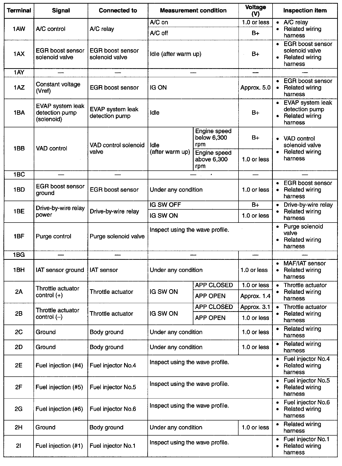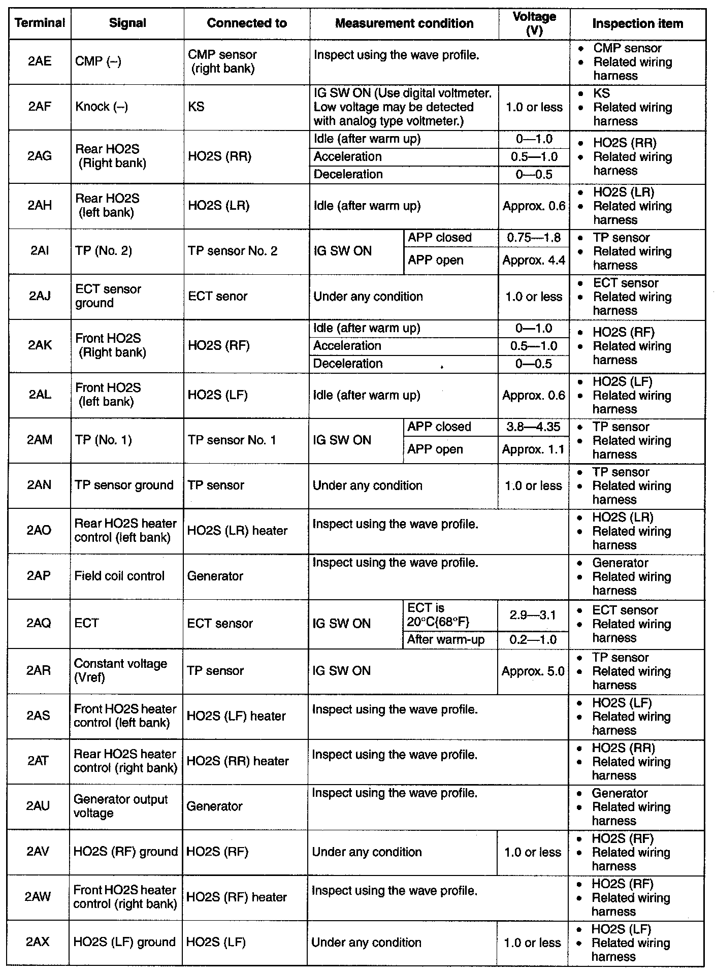 Terminal Voltage Table(Reference)-Terminal(2AY-2BH):