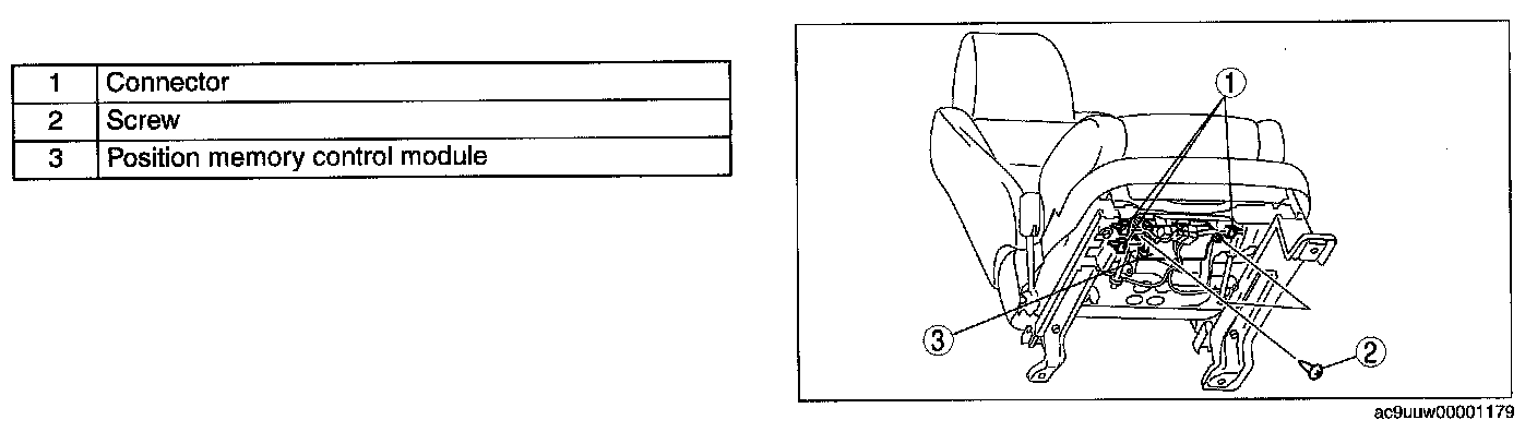 POSITION MEMORY CONTROL MODULE REMOVAL/INSTALLATION1. Operate the power seat switch and move the seat cushion toward and upward.