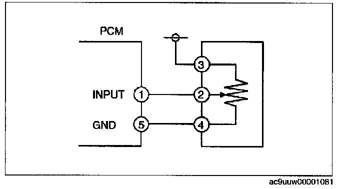7. Fully depress the throttle pedal and verify that the PID reading is within WOT value. (See PCM INSPECTION [MZI-3.5].) PCM Inspection