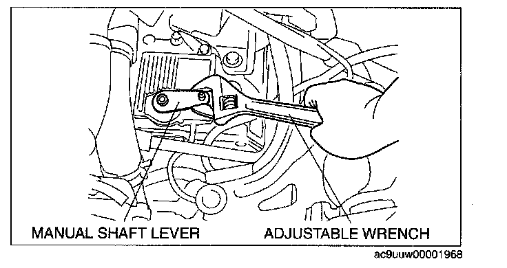 5. Set the adjustable wrench as shown in the figure to hold the manual shaft lever.